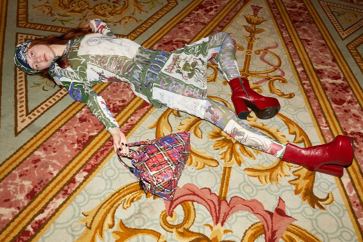 비비안 웨스트우드 특유의 아트 콜라주 프린트와